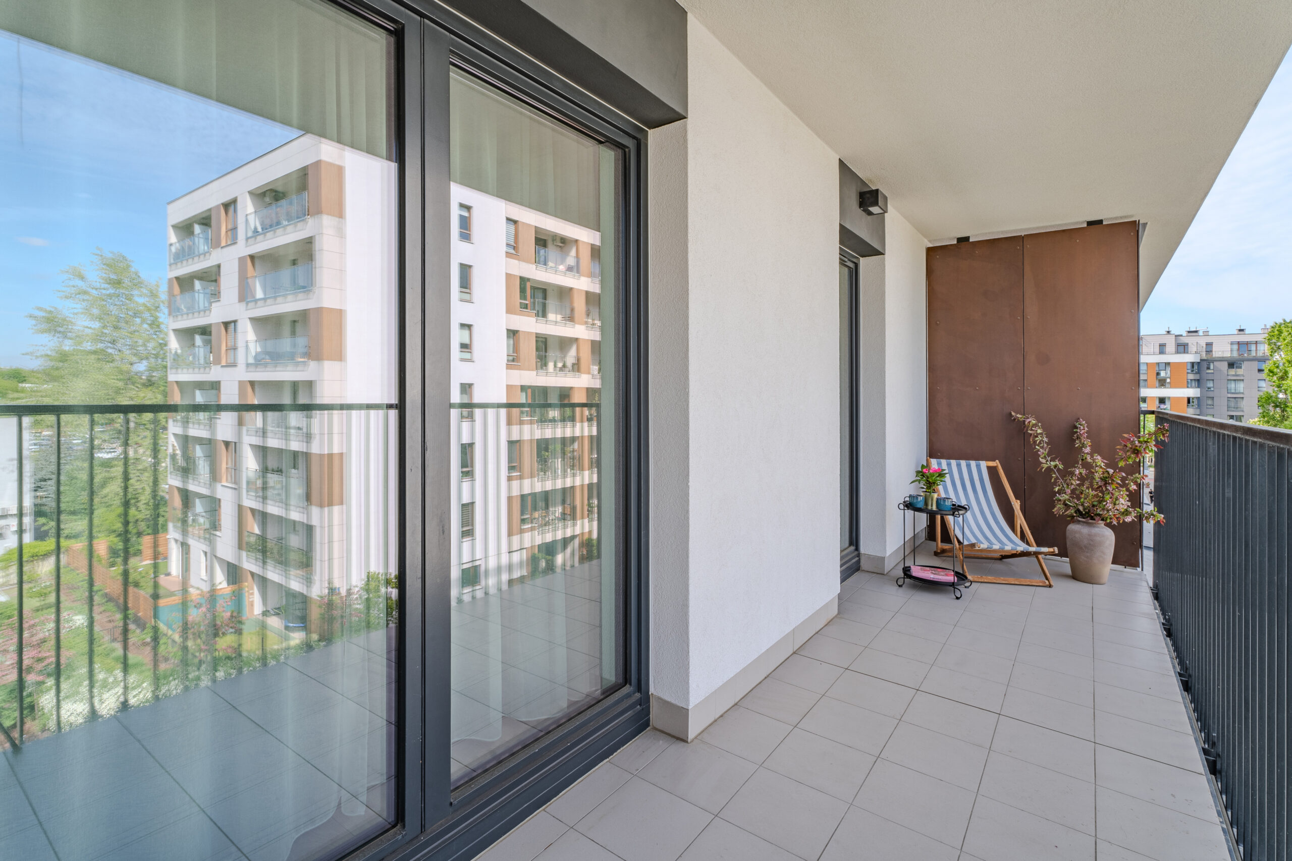 MIESZKANIE: położone jest na III piętrze z VI w nowoczesnym budynku z 2018 roku. Zostało wykończone z dbałością o detale z wysokiej jakości materiałów. Stonowana kolorystyka wnętrza zapewnia mu ponadczasowy charakter. Bardzo funkcjonalny układ pozwolił wydzielić 3 niezależne pokoje z dostępem do balkonów. Łazienka z oknem to rzadkość w tego typu budownictwie. Mieszkanie jest bardzo jasne – przeszklenia wychodzą na 3 strony świata. Wyposażenie: kuchnia z AGD, 3 szafy na wymiar (łącznie ponad 6 m.b.), regał w salonie i zabudowa łazienki.