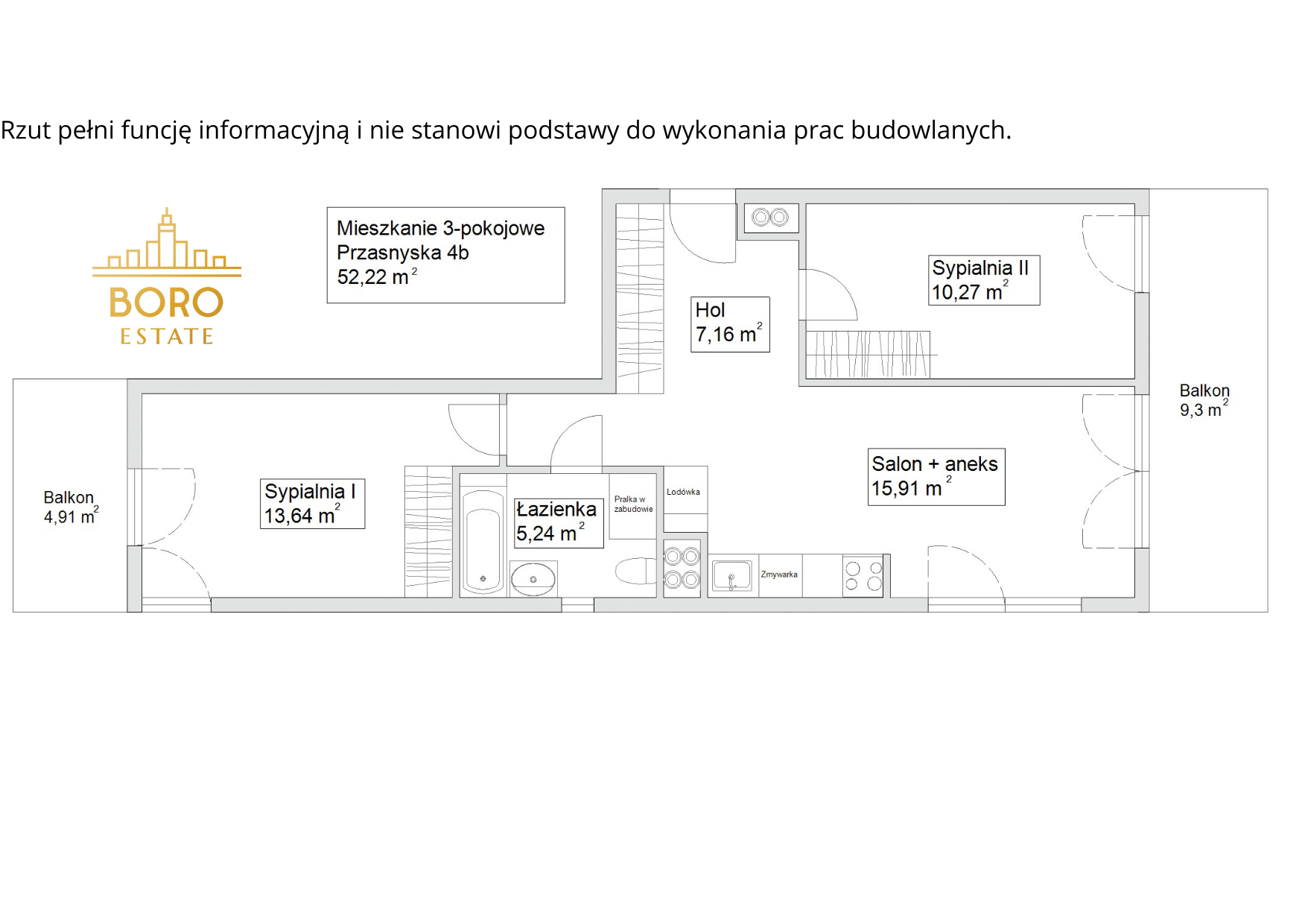 Zamieszczony w ogłoszeniu rzut ma charakter poglądowy i nie stanowi podstawy do przeprowadzenia prac budowlanych.