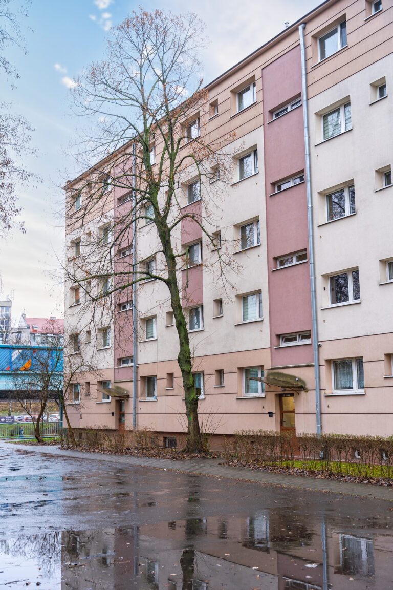 BUDYNEK: został wybudowany w 1959 roku z cegły. Przeszedł termoizolację, zostały wymienione w nim piony wodno–kanalizacyjne, elektryka oraz instalacja gazowa. Wyremontowane zostały również klatki schodowe. Budynkiem zarządza obecnie wspólnota mieszkaniowa i administracja.