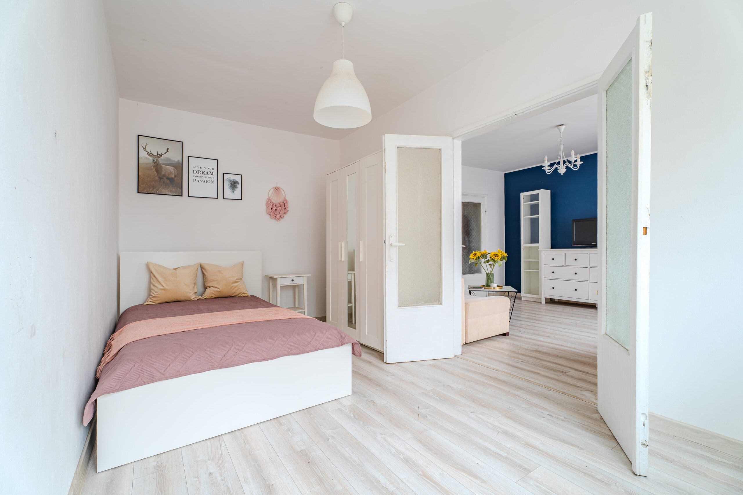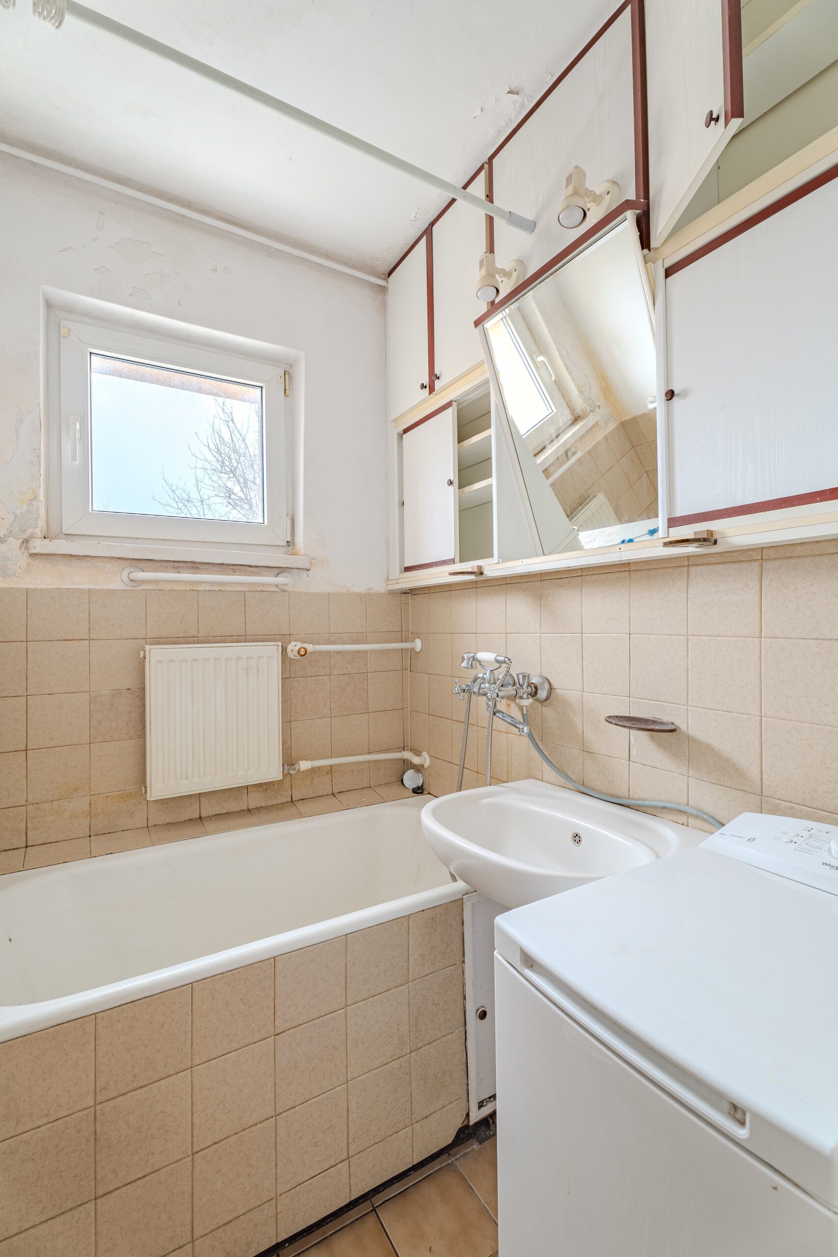 MIESZKANIE: znajduje się na IV (ostatnim) piętrze w bloku z 1959 roku bez windy. Jest dwustronne z ekspozycją na północno–południową stronę świata. Mieszkanie wymaga remontu. Posiada funkcjonalny układ pomieszczeń, który umożliwia stworzenie 3 oddzielnych pokoi lub powiększenie strefy dziennej.