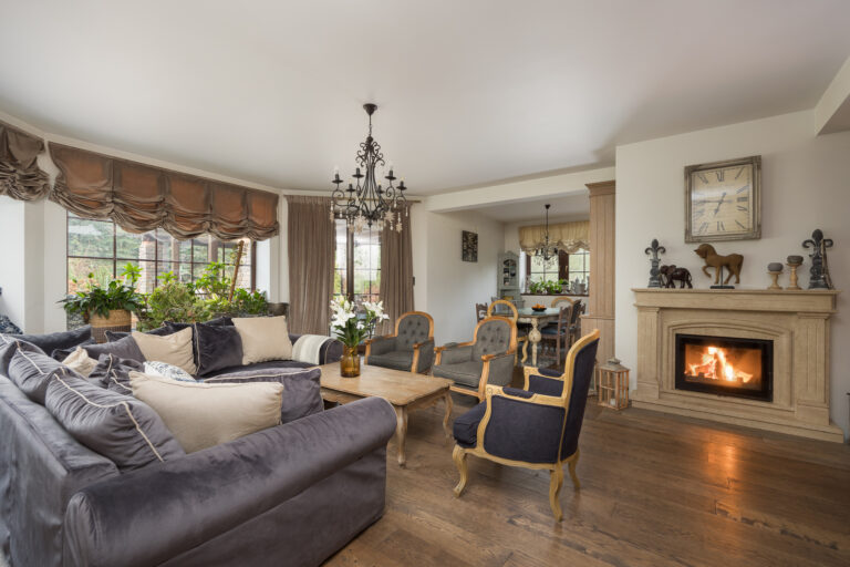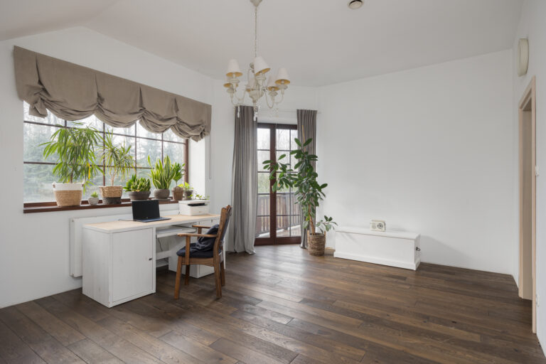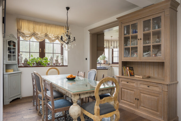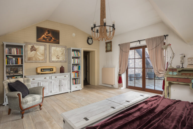Nieruchomość świetnie sprawdzi się dla rodziny ceniącej spokój i kontakt z naturą. Wnętrza domu zostały zaprojektowane w naturalnych barwach, idealnie odzwierciedlających rustykalny klimat. To przestrzeń, w której możesz w pełni cieszyć się spokojem, harmonią z przyrodą i chwilami wytchnienia.