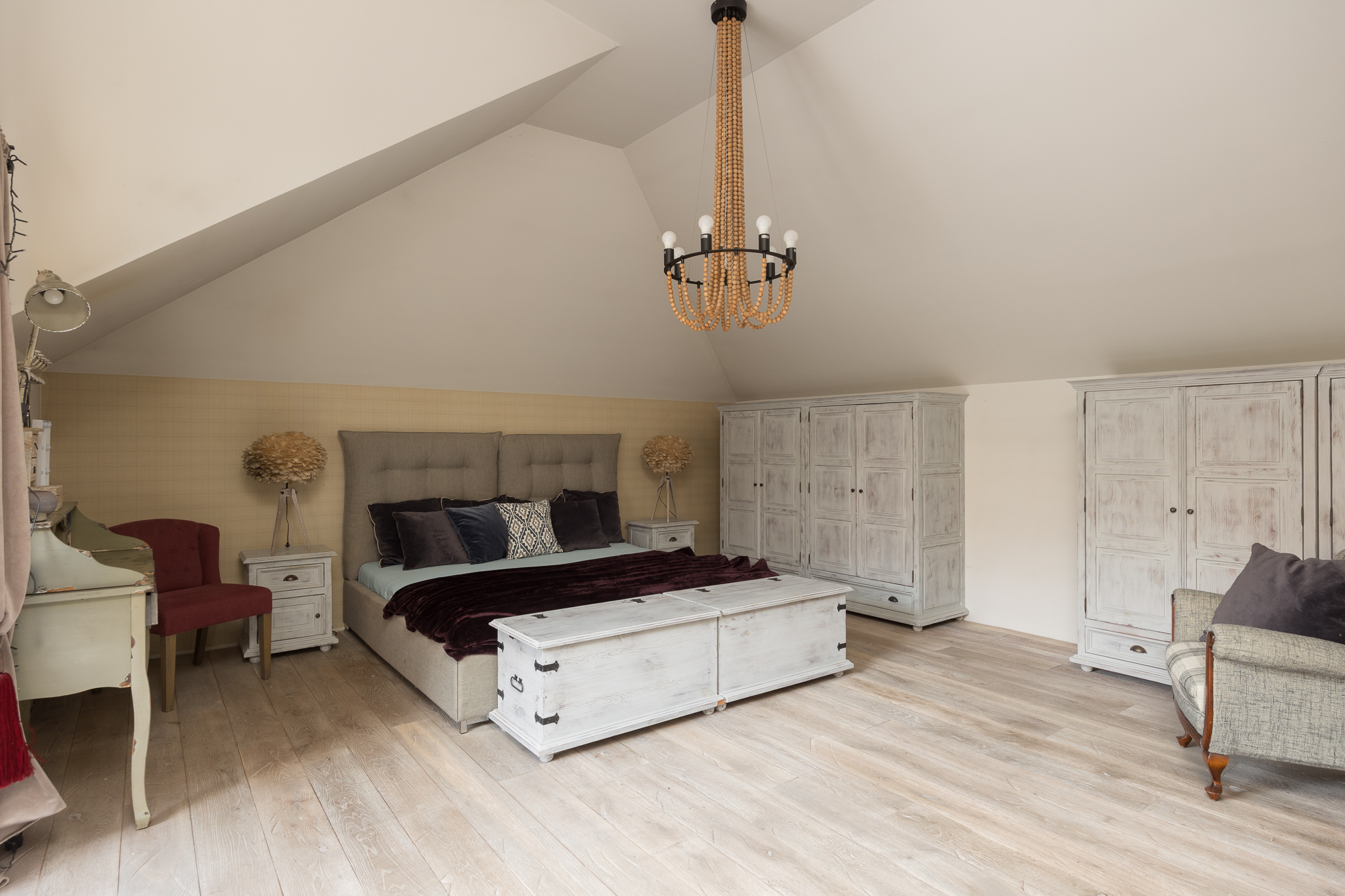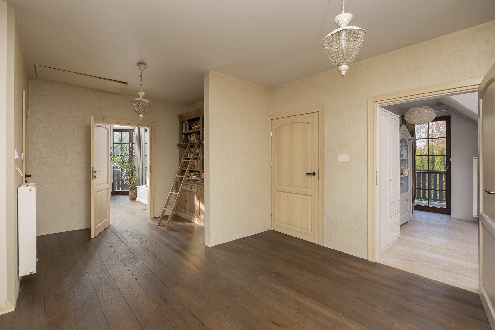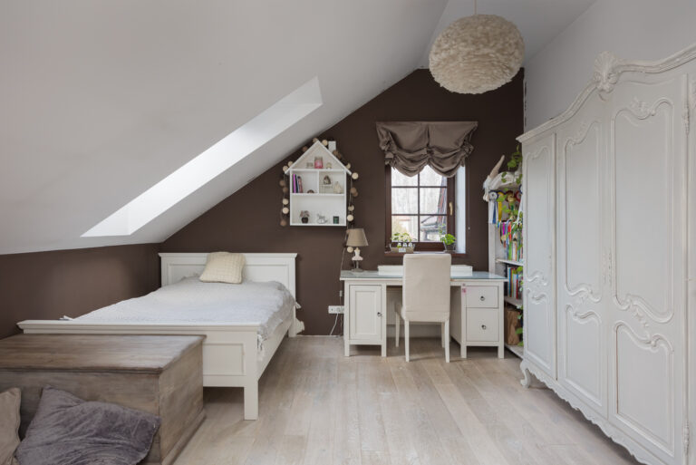 PODDASZE: powierzchnia 96,5 m2, w której znajdziemy 4 przestronne sypialnie, każda z wyjściem na taras, a także 2 komfortowe łazienki oraz duży hol z biblioteczką. Na strychu znajduje się dodatkowe pomieszczenie, które doskonale sprawdzi się jako przestrzeń do przechowywania.