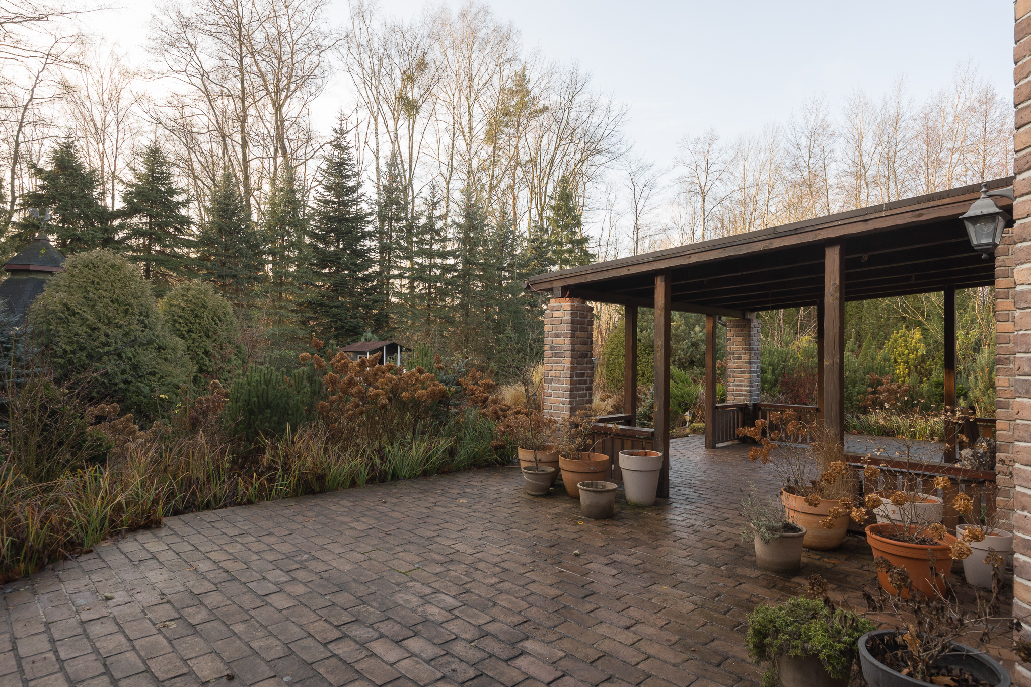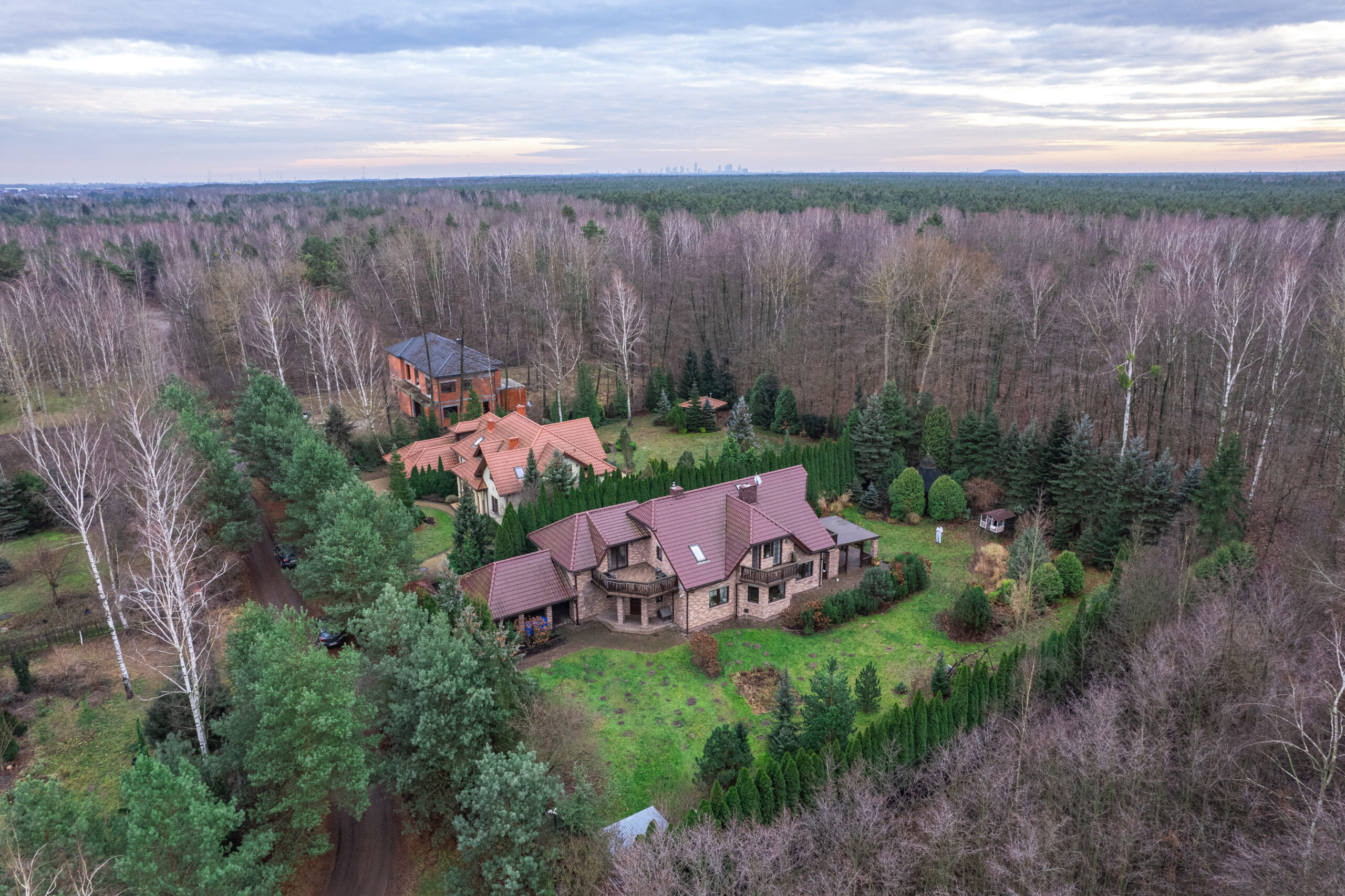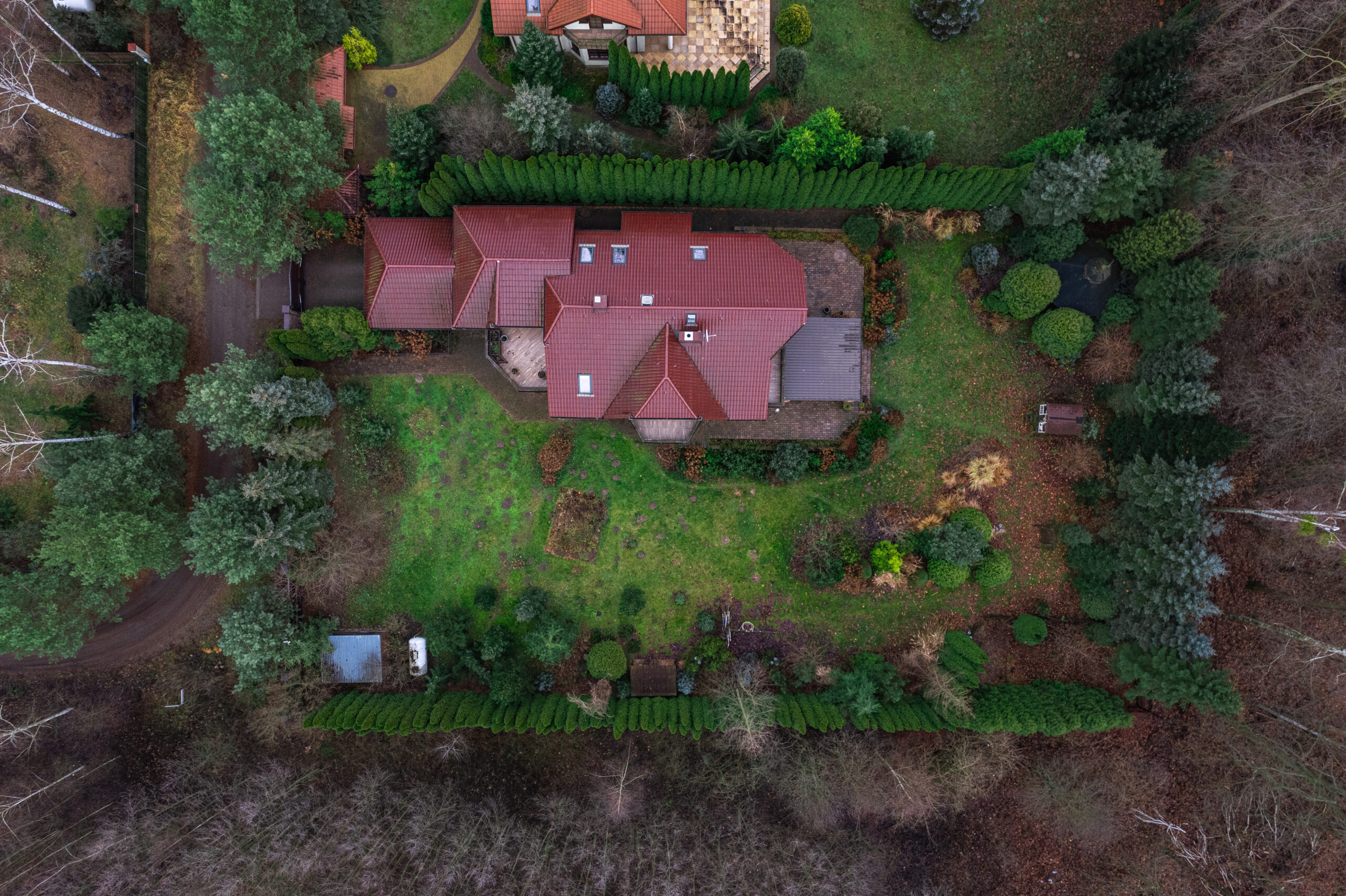 DZIAŁKA: o powierzchni 2213 m2 w pełni zaaranżowanego terenu, na której znajdują się liczne drzewa oraz nasadzenia. Olbrzymim atutem działki jest bezpośrednie, prywatne wyjście z ogrodu do Puszczy Kampinoskiej. Cała działka otoczona jest kilkumetrowymi tujami, które zapewniają kameralność i pełną prywatność. Okolica jest niezwykle cicha i spokojna, a bliskość Kampinosu sprawia, że z tarasu często można obserwować sarny.