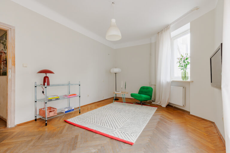 MIESZKANIE: położone jest na I piętrze w pięknej, przedwojennej kamienicy z windą. Jest widne, dobrze doświetlone, z ekspozycją na zachodnią stronę świata. Okna w mieszkaniu wychodzą na bardzo kameralną ulicę Olszewską (kuchnia i sypialnia) oraz cichą ulicę Chocimską (salon). Funkcjonalny układ mieszkania oraz świetna lokalizacja sprawiają, że jest to bardzo dobry zakup pod inwestycję. Nieruchomość doskonale sprawdzi się również jako biuro.
