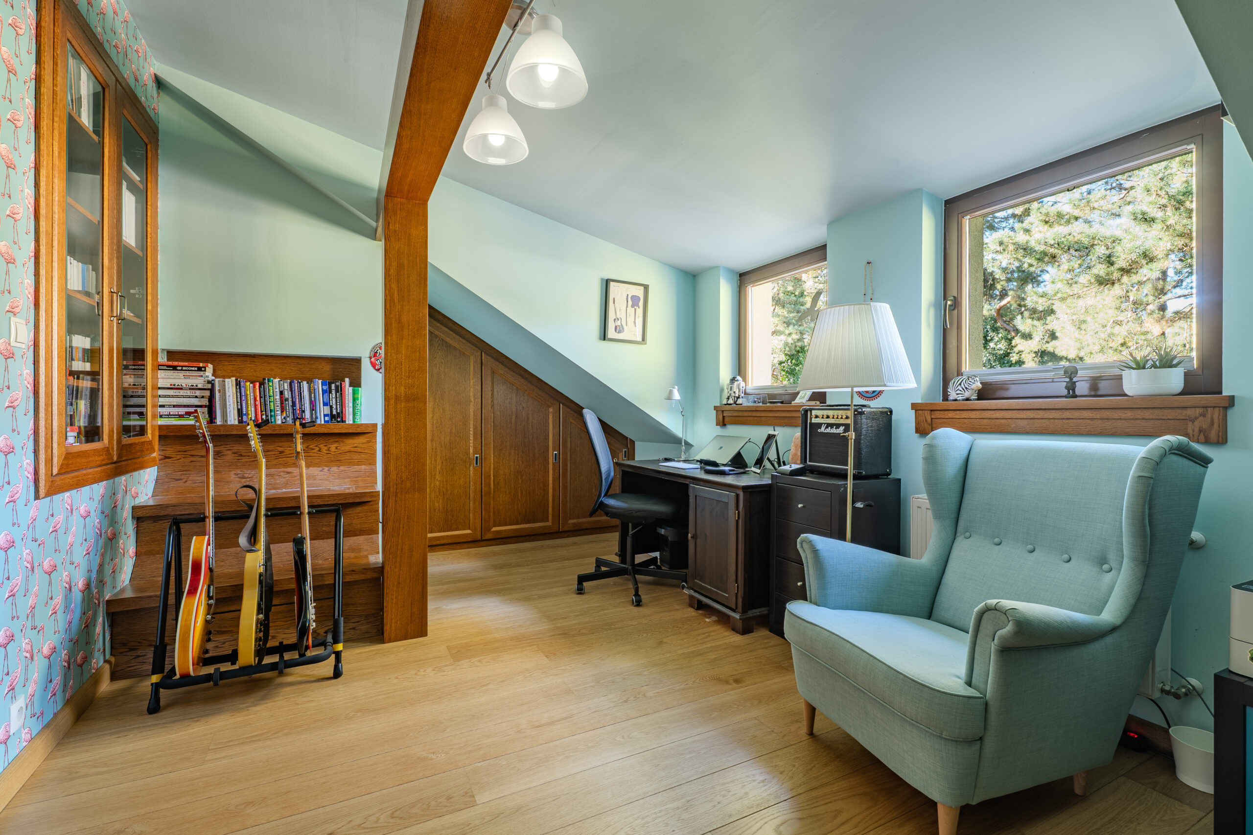 Odświeżone wnętrza, ogród pełen zieleni i sąsiedztwo Lasu Bemowskiego tworzą harmonijną przestrzeń do życia – blisko natury, a jednocześnie z szybkim dostępem do centrum miasta.