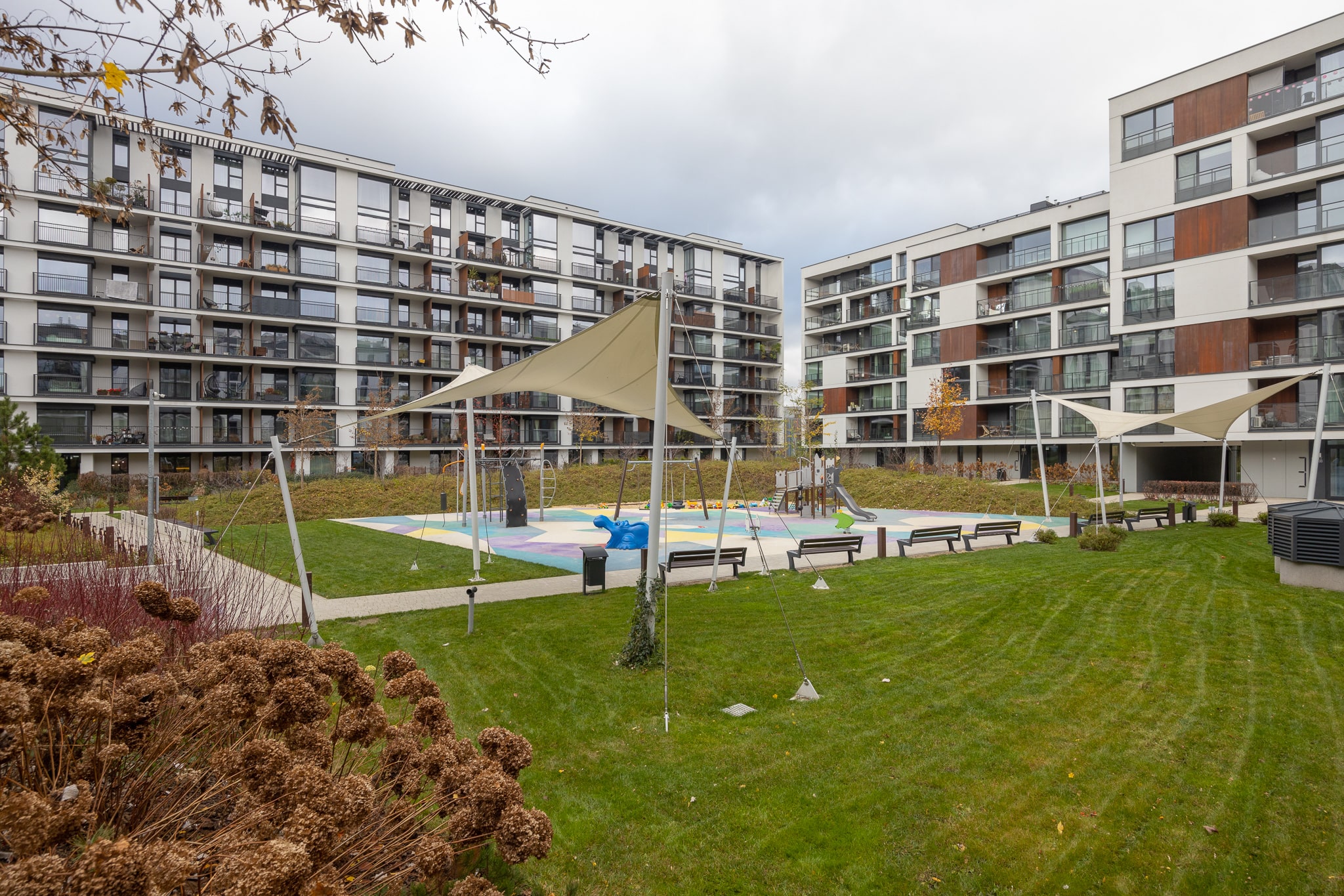 Wybudowany w 2018 roku z wysokiej klasy materiałów. Estetyczne części wspólne oraz reprezentatywne zielone patio z licznymi nasadzeniami. Na terenie osiedla znajduje się recepcja z całodobową ochroną, plac zabaw oraz zadaszone miejsce na rowery.