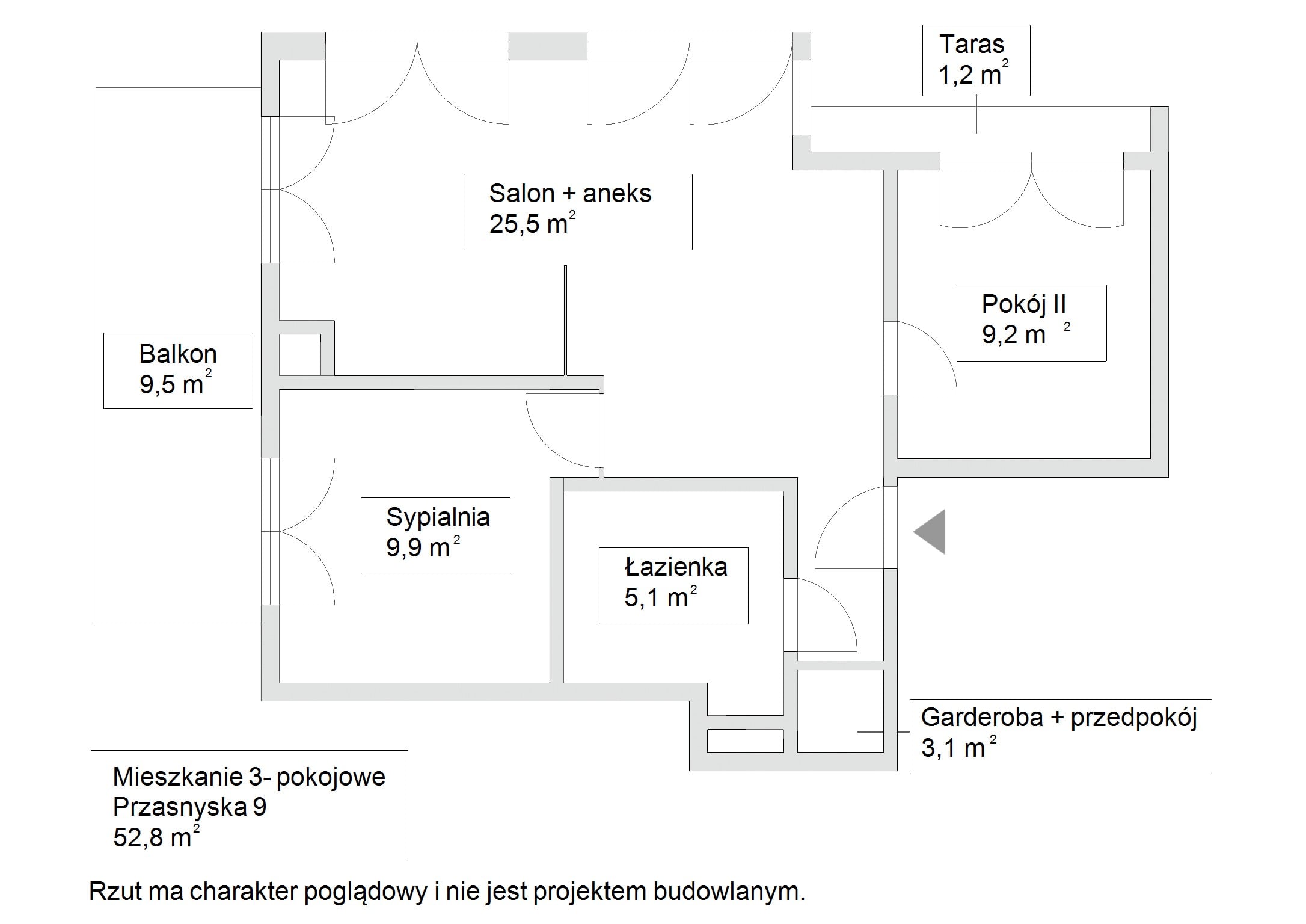 | Powierzchnia | 52 m² | Piętro | 1/3 |