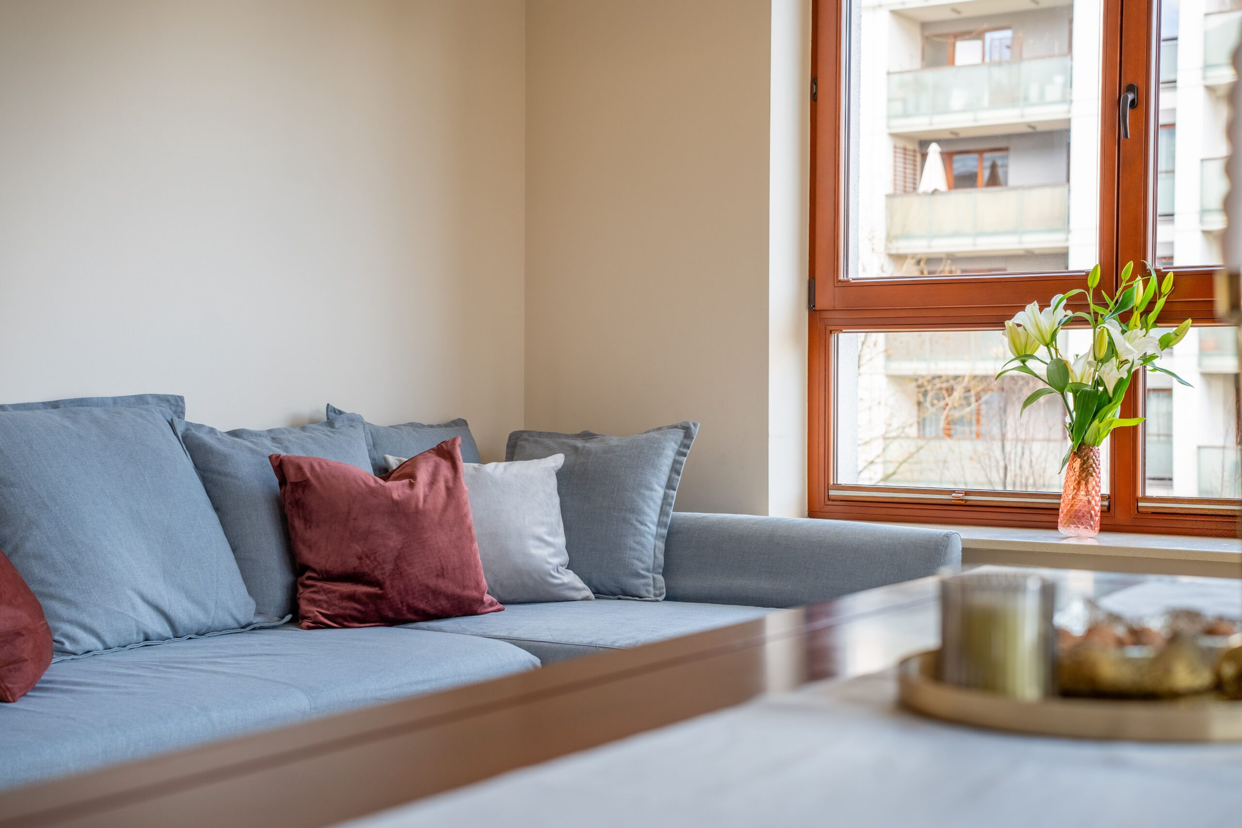 Na wyróżnienie zasługują estetycznie wykończone części wspólne oraz zadbane zielone patio. Na terenie zamkniętego osiedla znajdziemy recepcję z całodobową ochroną oraz plac zabaw dla najmłodszych.